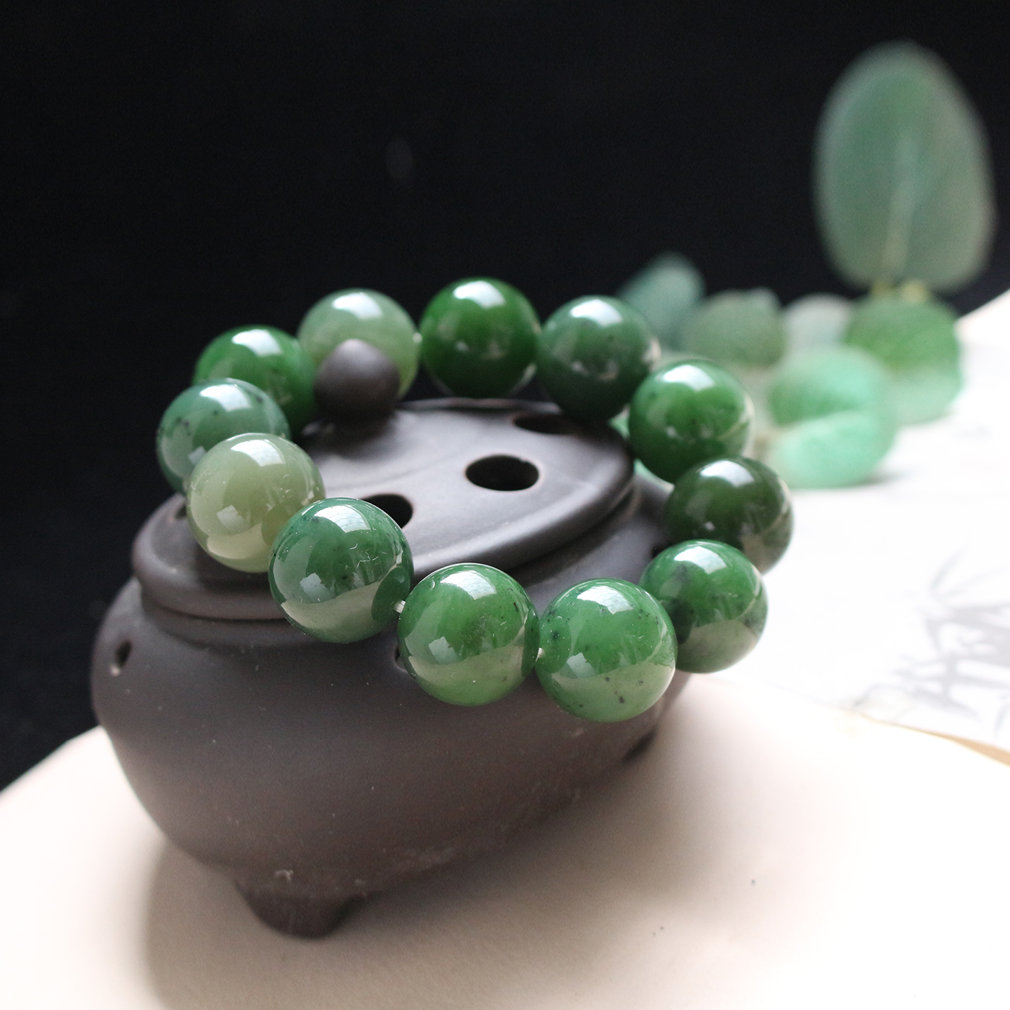 和田玉碧玉手串男士18mm圆珠文玩手链可加工接定制