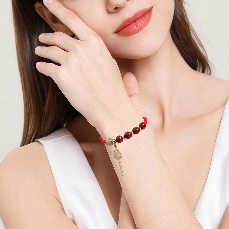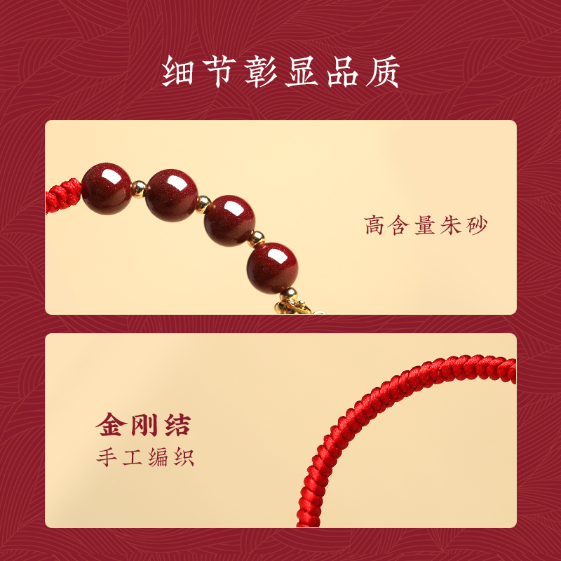 普陀山红绳手链女天然朱砂本命年女款和田玉转运珠手链金刚结编织
