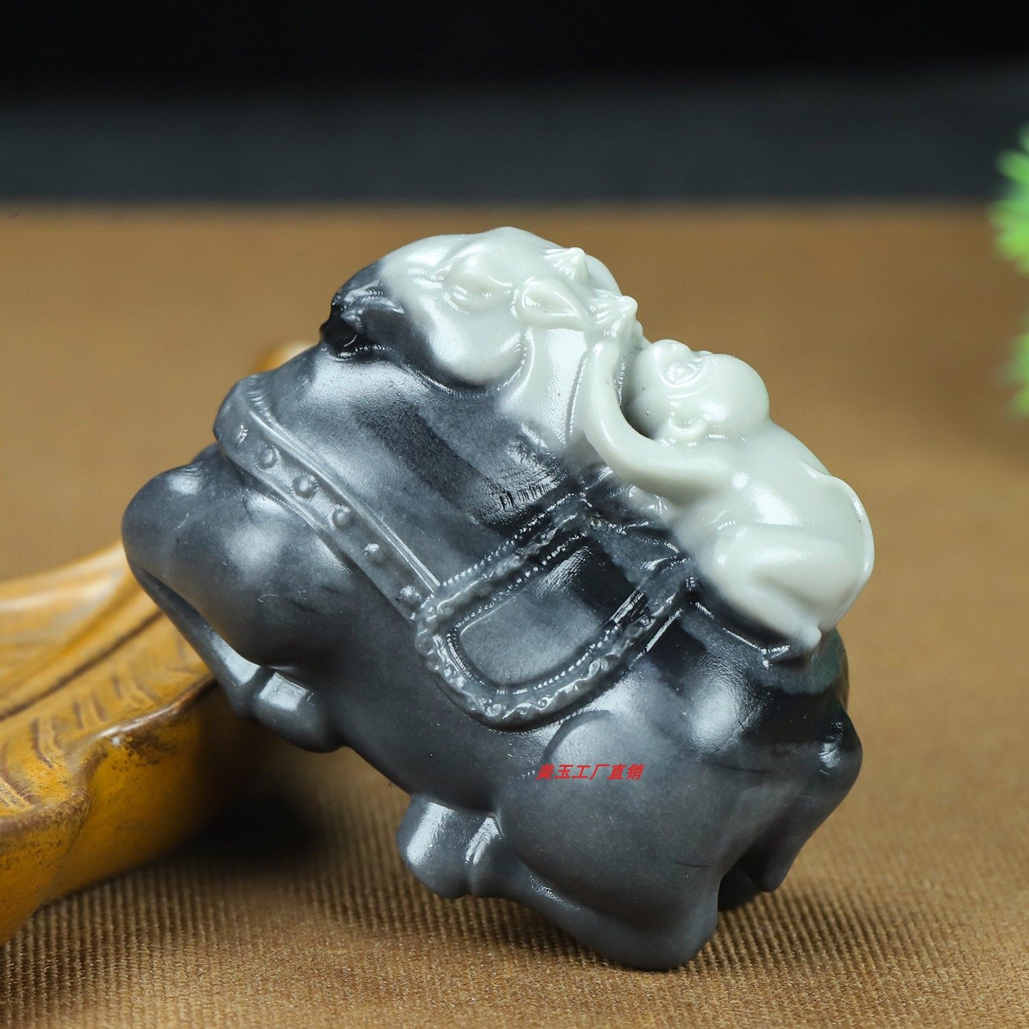 和田玉青花俏色马上封侯手把件青花意境马上封侯把玩件