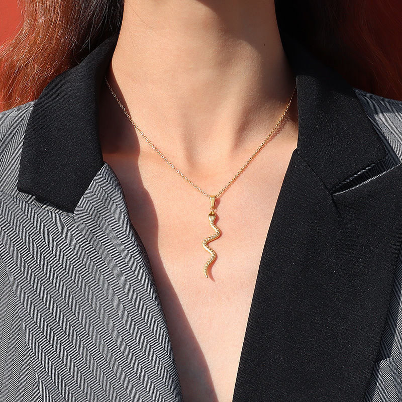 英国chrry koop欧美ins弯曲蛇形吊坠项链女chocker颈链钛钢首饰