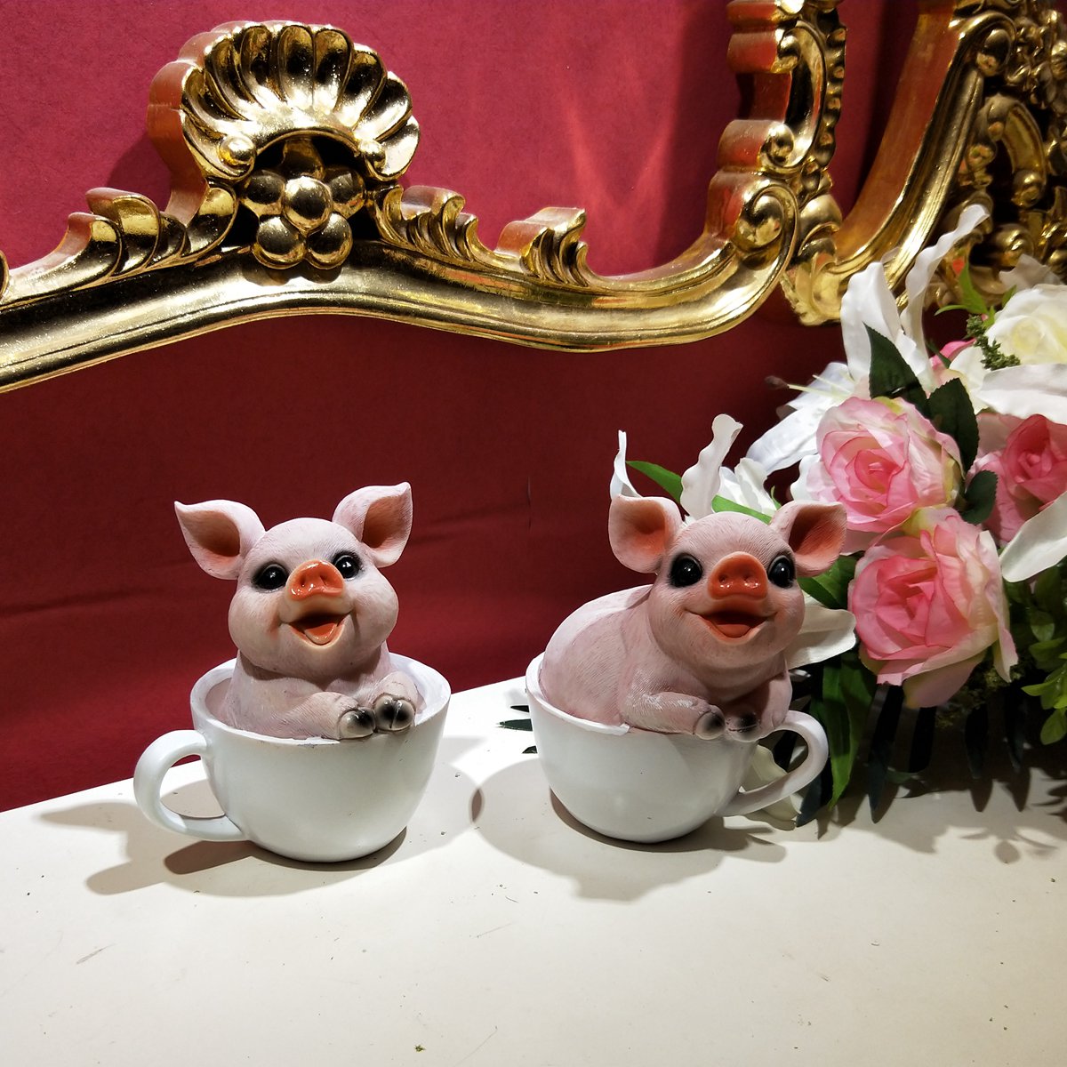 可爱茶杯猪仿真小猪摆件工艺品创意搞怪女生朋友表白布置生日礼物
