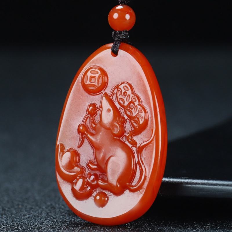 当前位置:首页>商品详情>天然凉山保山南红玛瑙柿子红生肖鼠 吊坠挂件转运男女款儿童9号