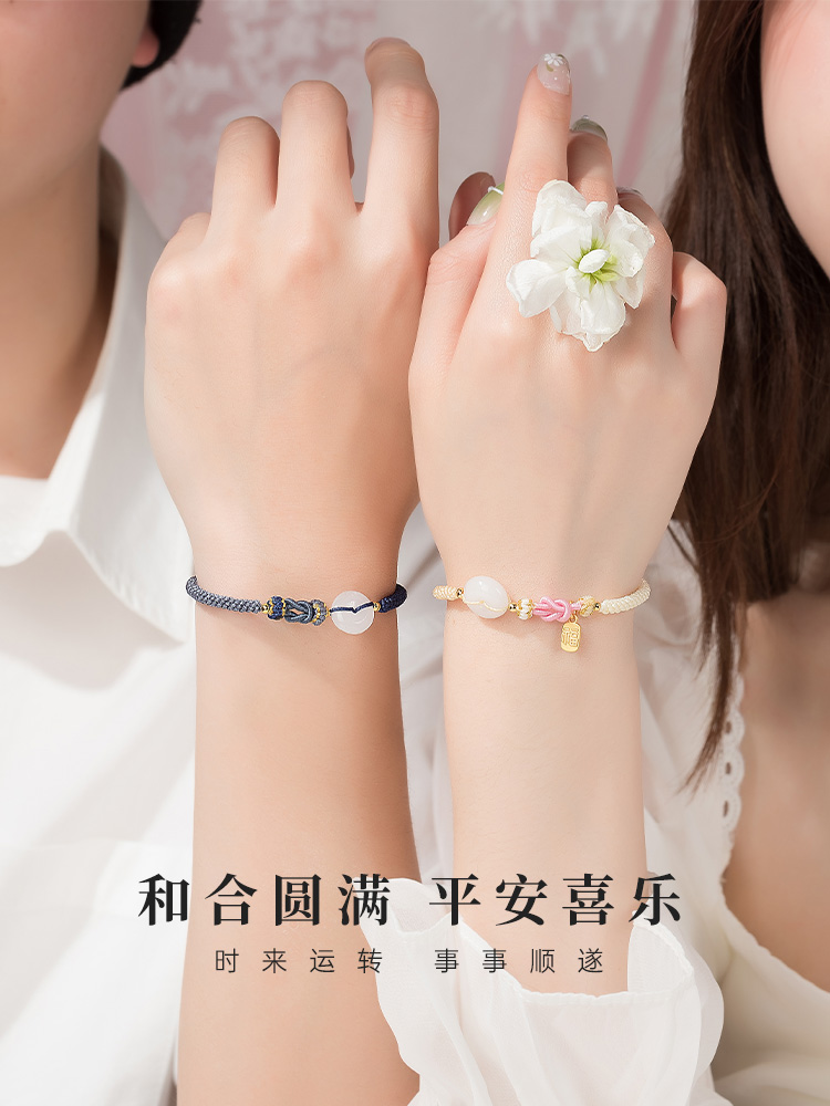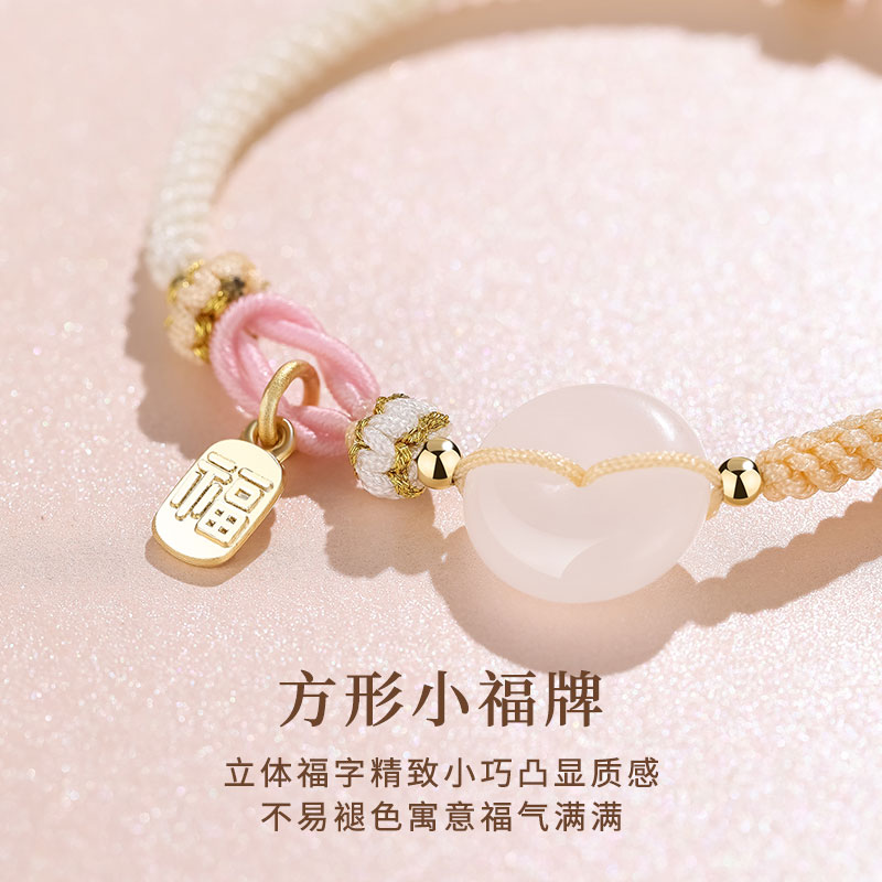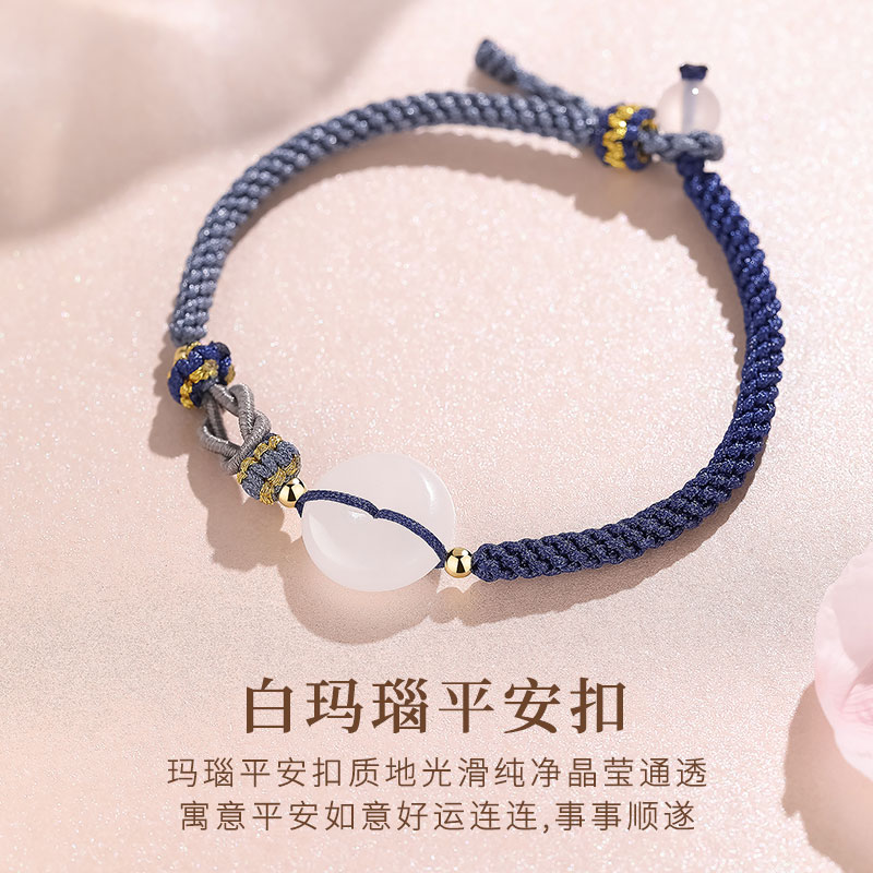纳福平安扣情侣手链女白玛瑙编织手绳男款轻奢小众精致送女友礼物