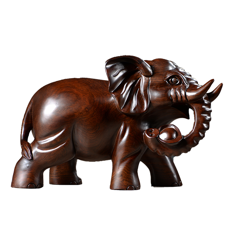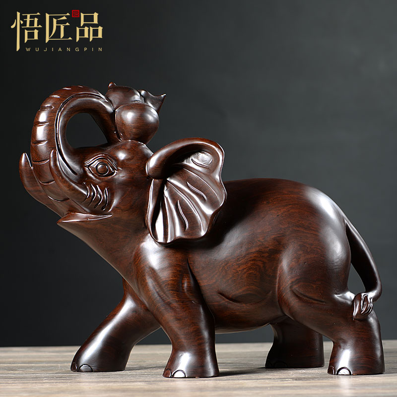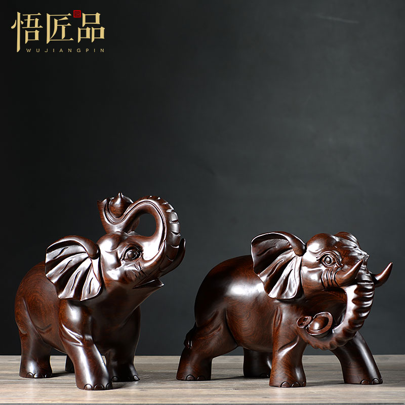 黑檀木雕大象摆件一对实木家居仿古木质吉祥象客厅酒柜装饰工艺品