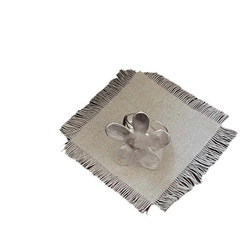 韩国ins博主同款银饰品 S925纯银重工拉丝雏菊戒指气质感食指环女