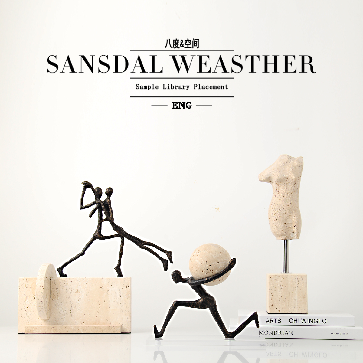 【八度空间】侘寂风天然黄洞石创意几何桌面高级感摆件套装组合