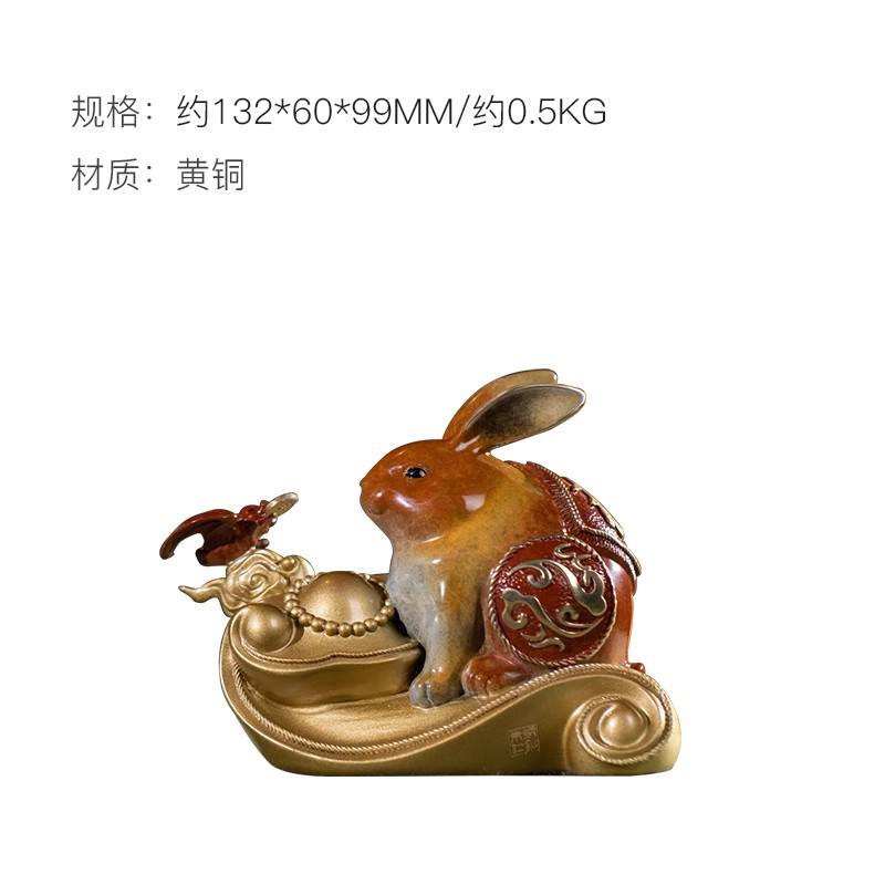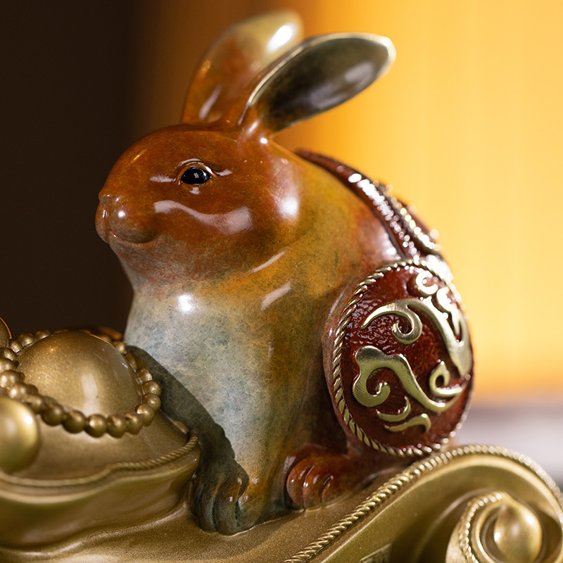 朱炳仁铜福兔送财创意铜雕兔子摆件萌宠家居饰品办公桌面摆件