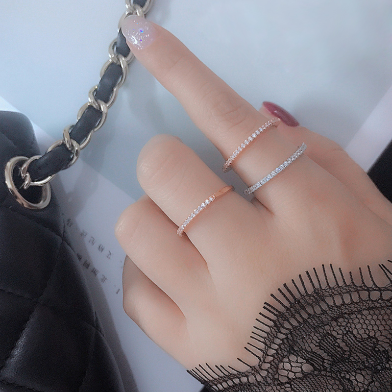 单排钻极简c戒指女时尚食指戒新款网红碎钻蹦迪戒指时尚潮人尾戒