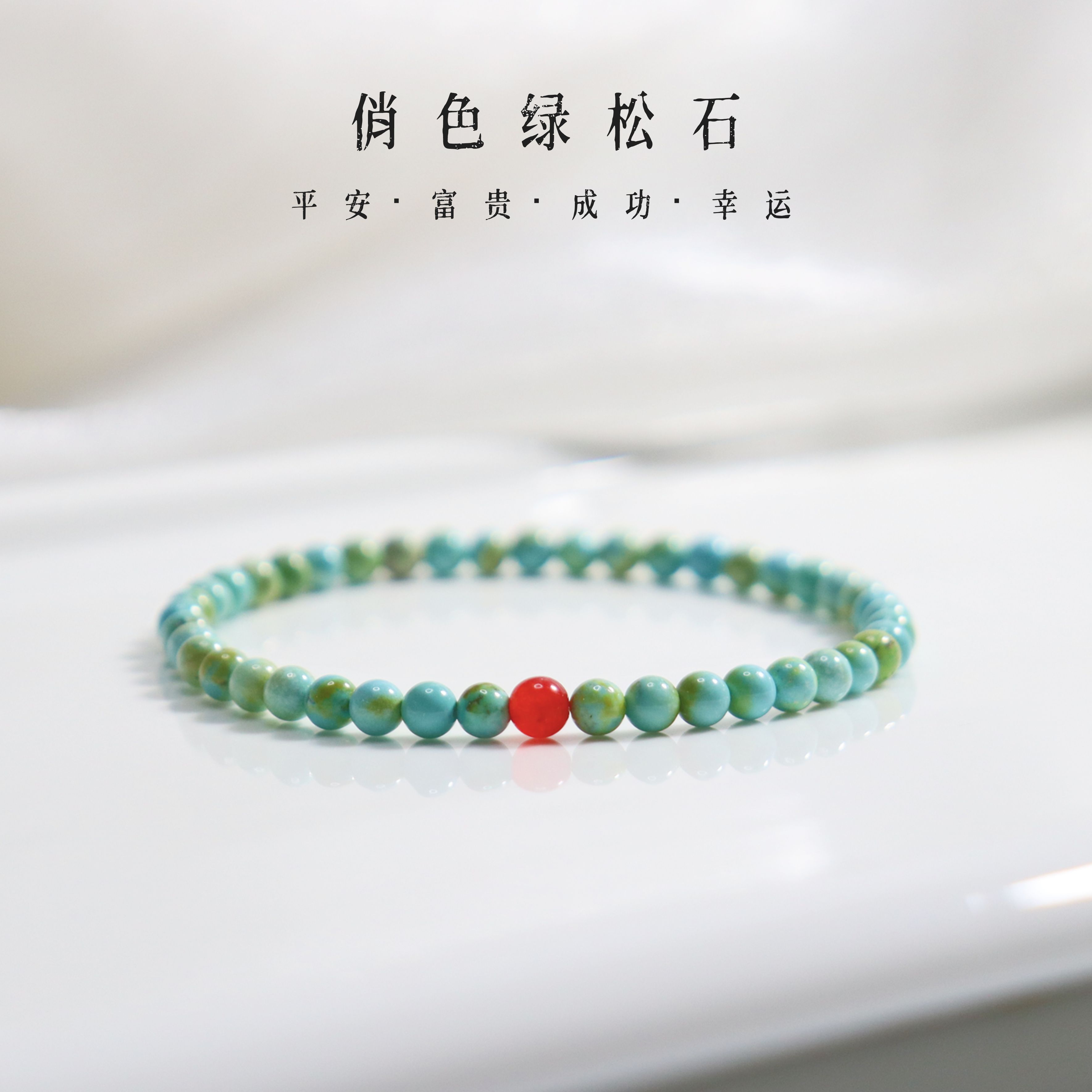 小清新天然湖北蓝绿松石手串新中式天然石手链高瓷简约礼盒包装