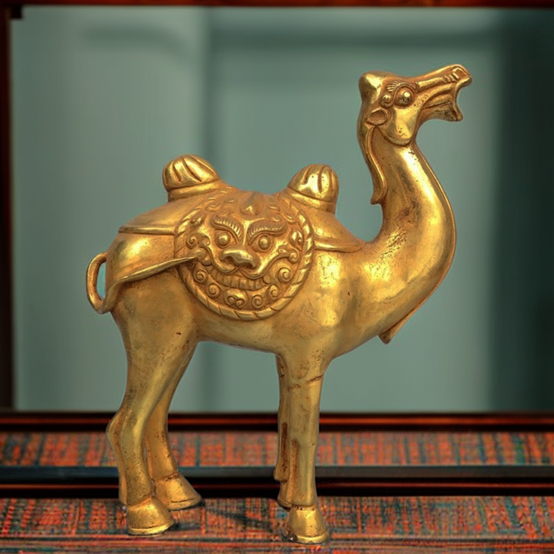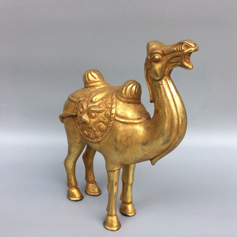 古玩收藏纯铜鎏金骆驼沙漠双峰骆驼家居桌面办公室玄关装饰礼品
