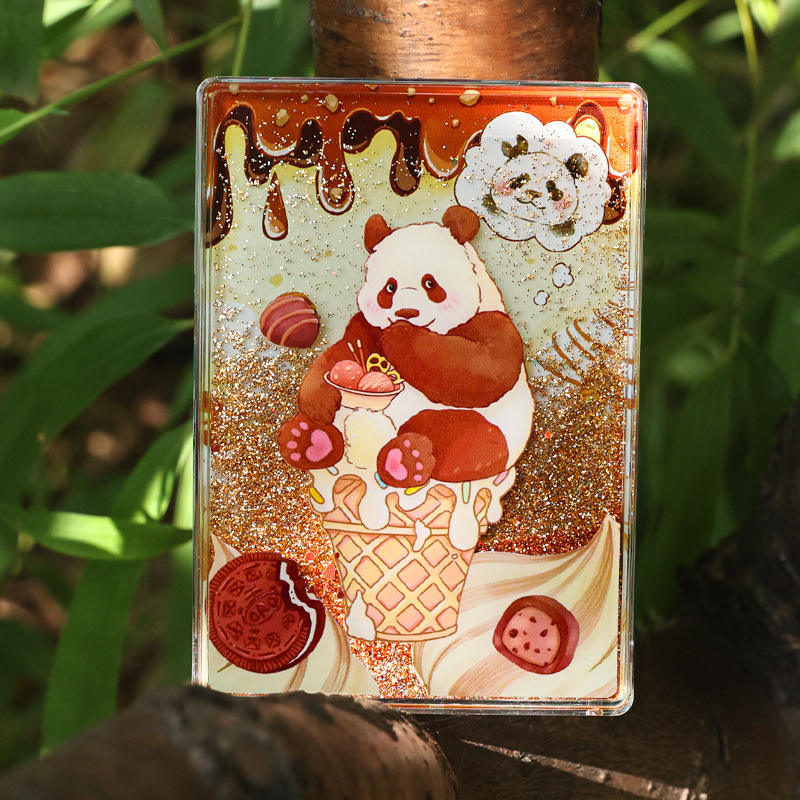 亚克力文创贴熊猫七仔流沙冰箱挂件创意学生风高级感礼物装饰摆件