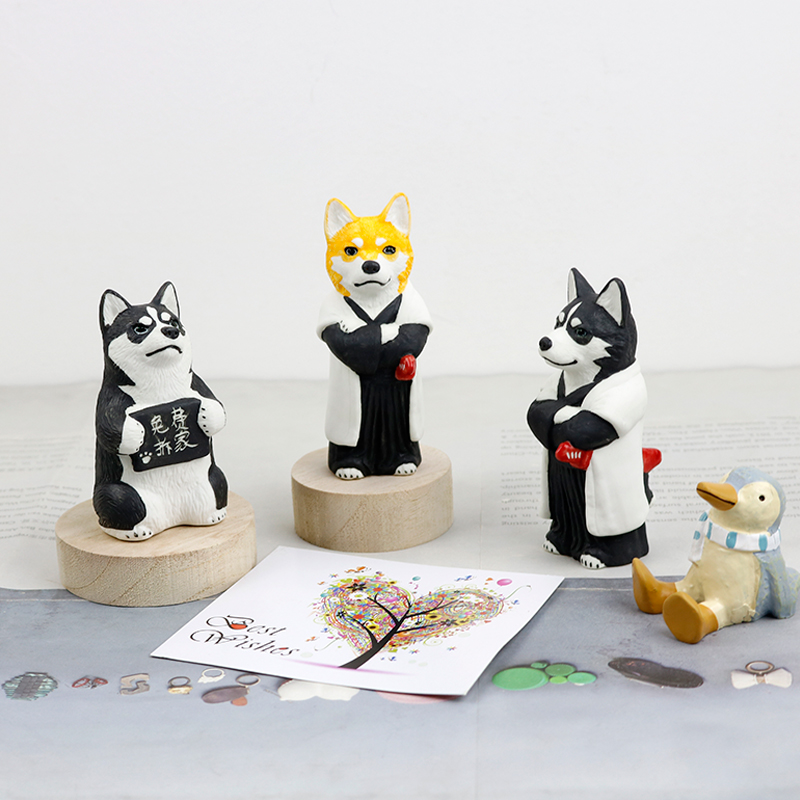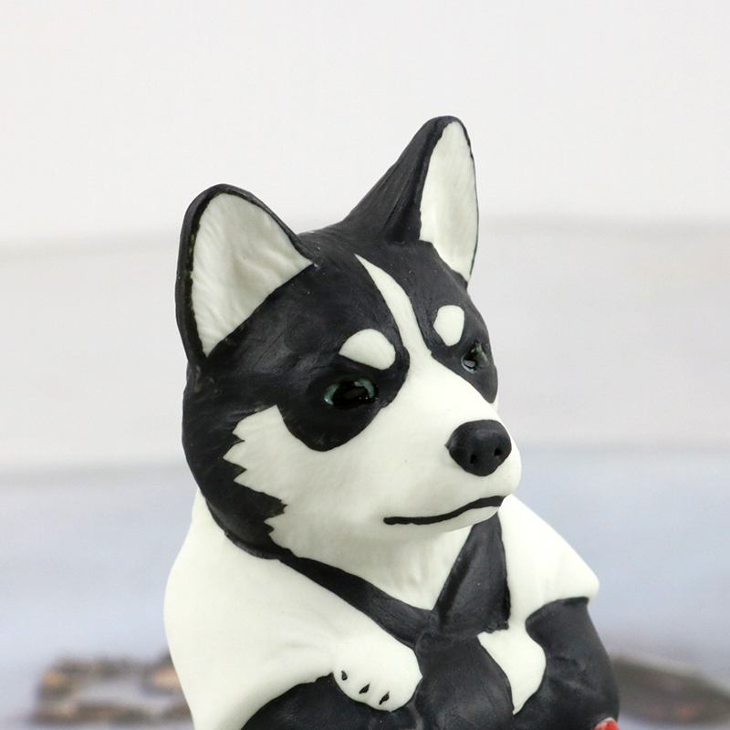 哈士奇武士陶瓷摆件创意装饰品卡通二哈小狗车载玩偶办公桌面礼物