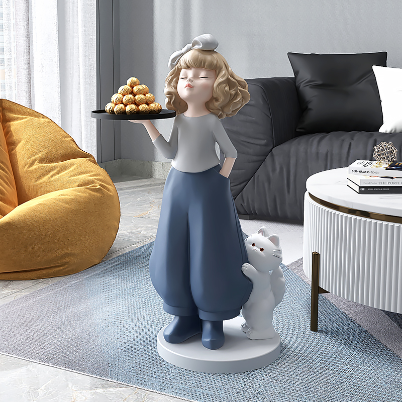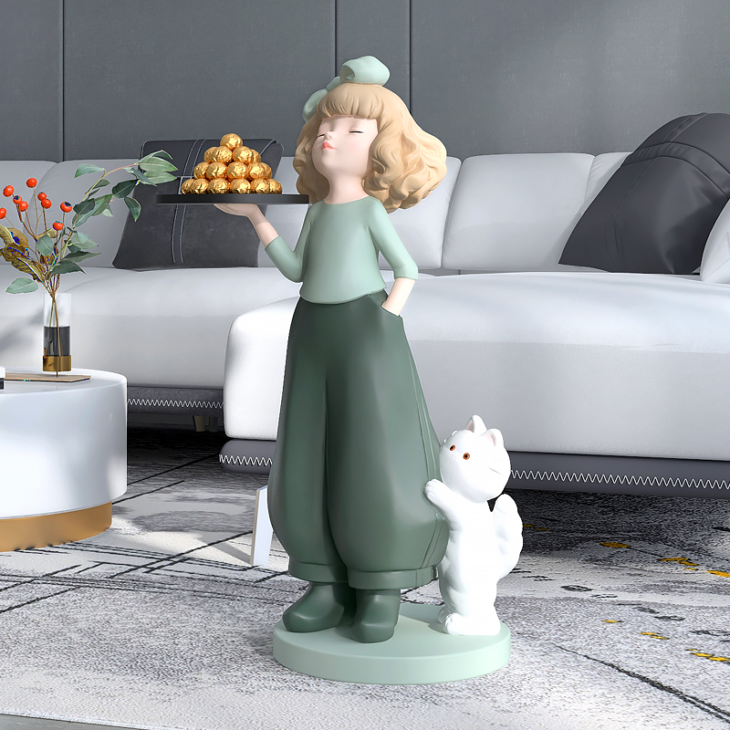 创意网红女孩客厅k摆件大型落地沙发电视柜旁边迎宾软装家居饰品