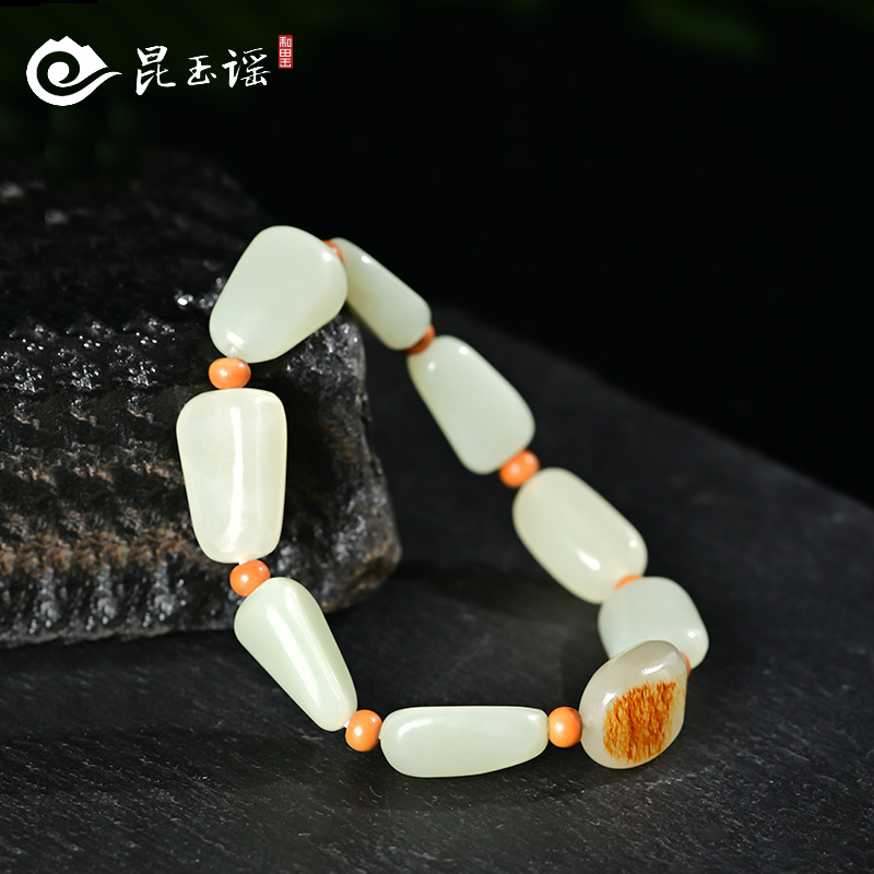 昆玉谣新疆和田玉白玉手链手串天然原石随型男士爸爸老公礼物