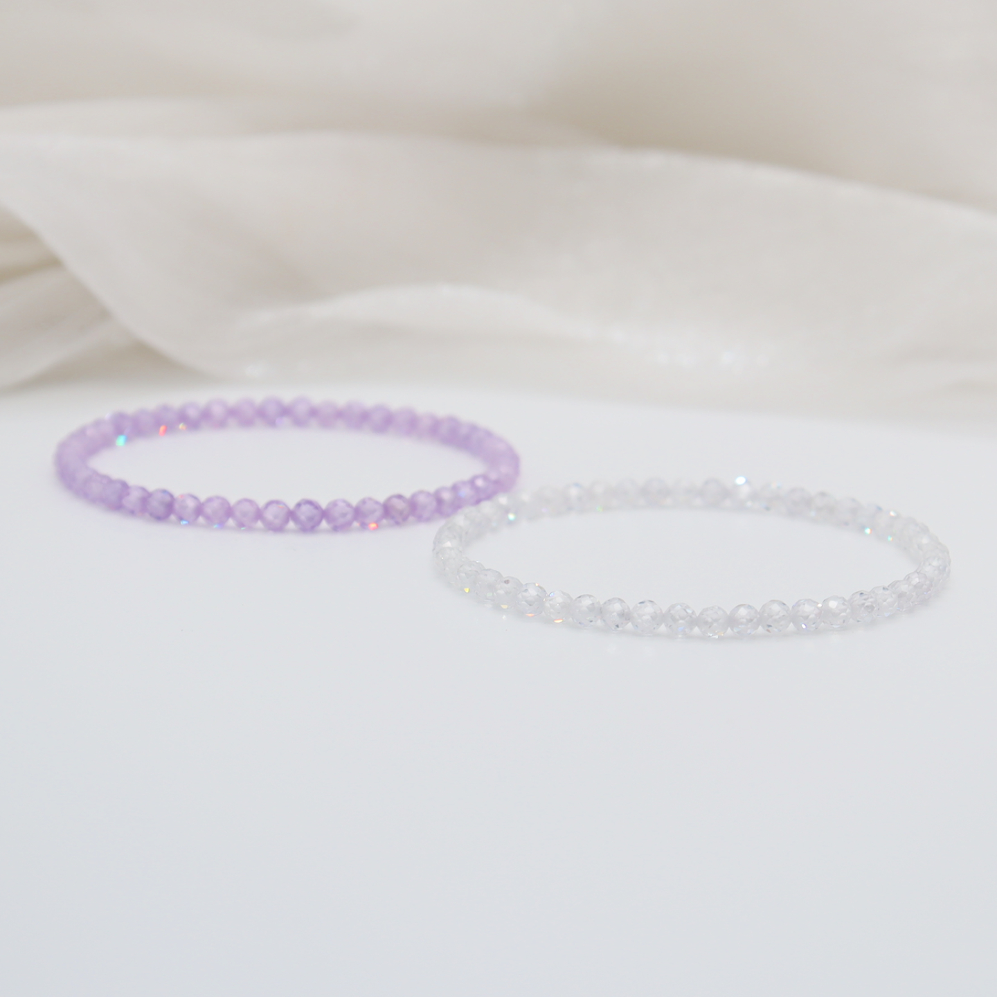 Charon正品天然紫粉白色锆石手链女款简约高级水晶手串礼盒包装