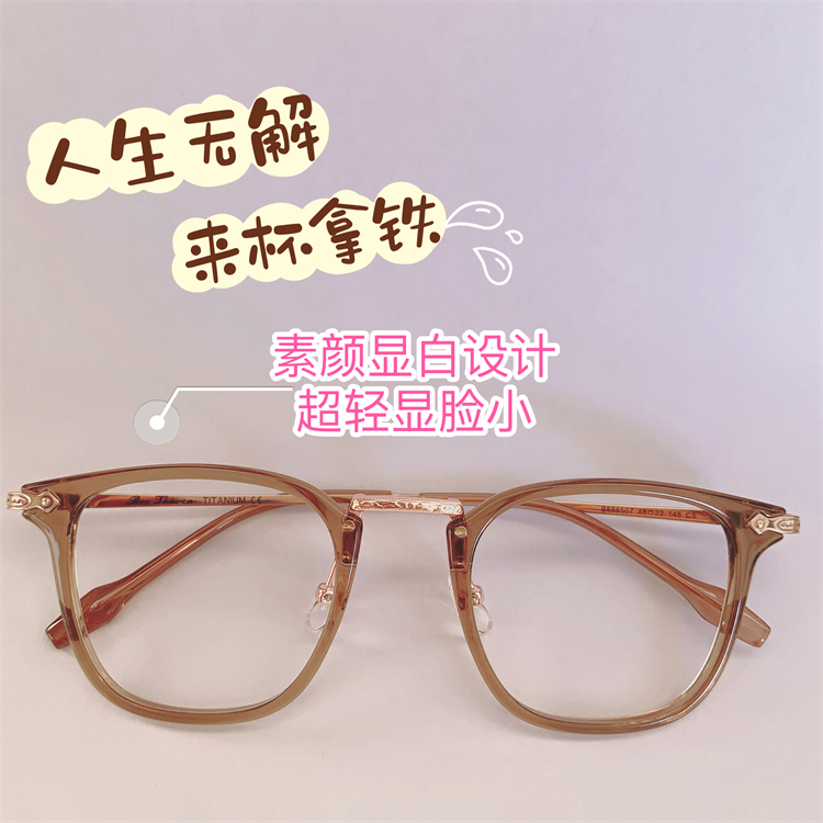 冷茶色近视眼镜框女可配度数超轻纯钛大脸素颜配防蓝光800度眼镜