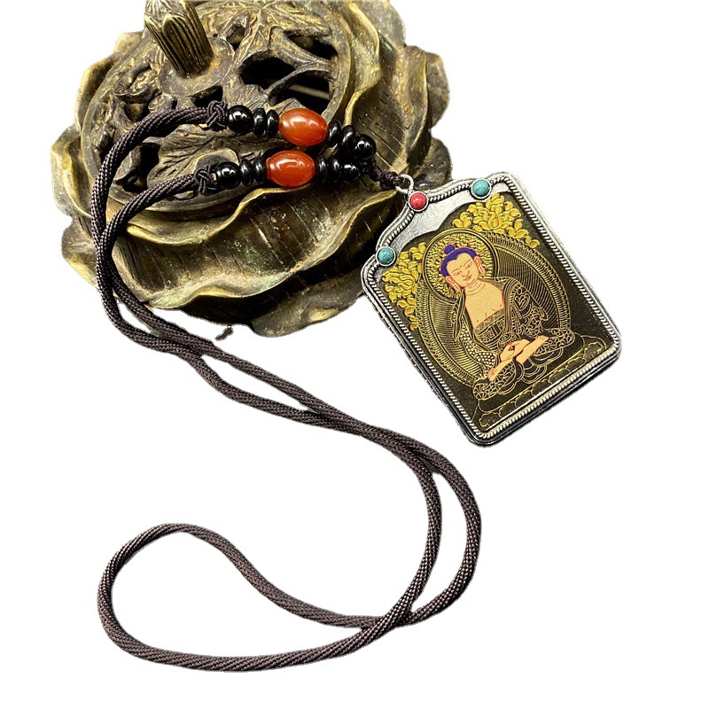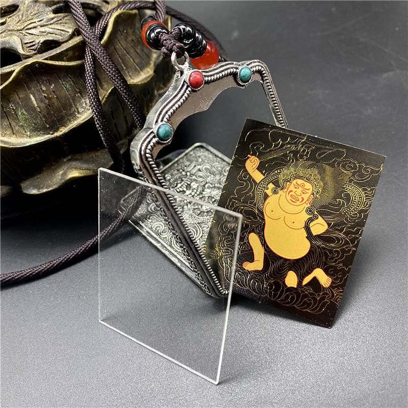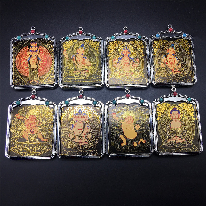 唐卡八大守护神吊坠十二生肖黑金画芯嘎乌盒画盒男女款毛衣链