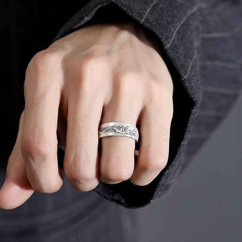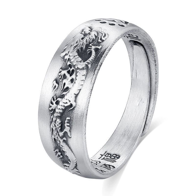 民族风戒指男潮银单身个性复古开口可调节生肖飞龙指环男生潮食指