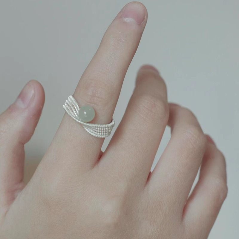 新中式编织线条仿和田玉戒指女小众设计轻奢高级感食指戒百搭指环