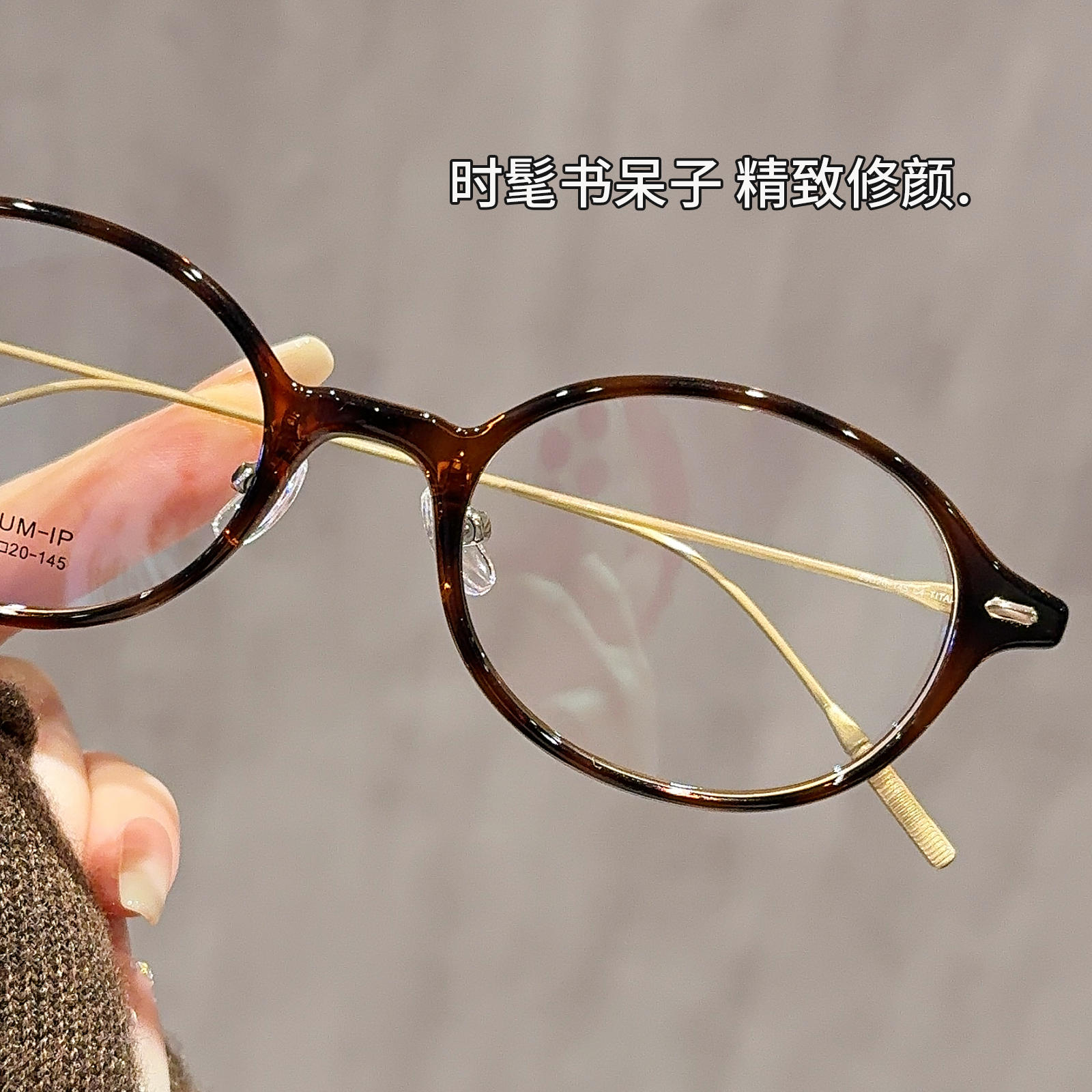 超轻纯钛玳瑁书呆子眼镜女近视可配高度数防蓝光素颜椭圆眼睛框架