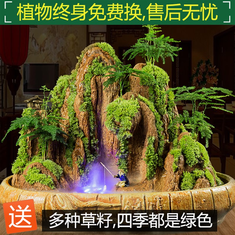 假山流水喷泉摆件办公室微景观客厅室内加湿鱼缸桌面开业装饰礼品