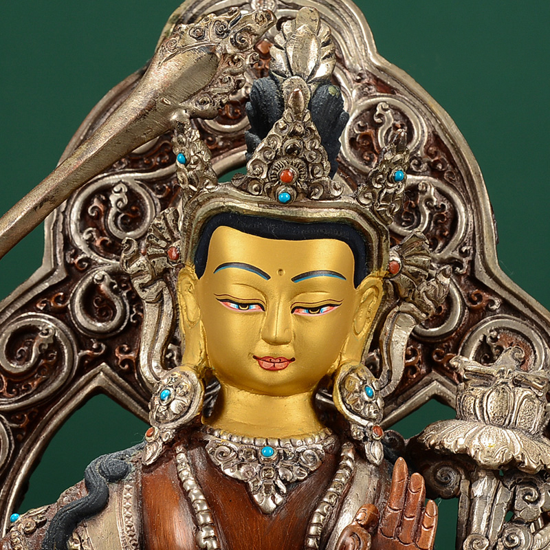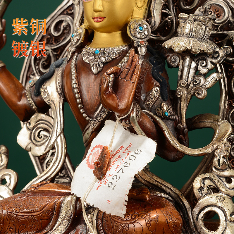 释迦族铜像 尼泊尔手工8寸铜镀银玄关像装饰摆件文殊菩萨家居用品
