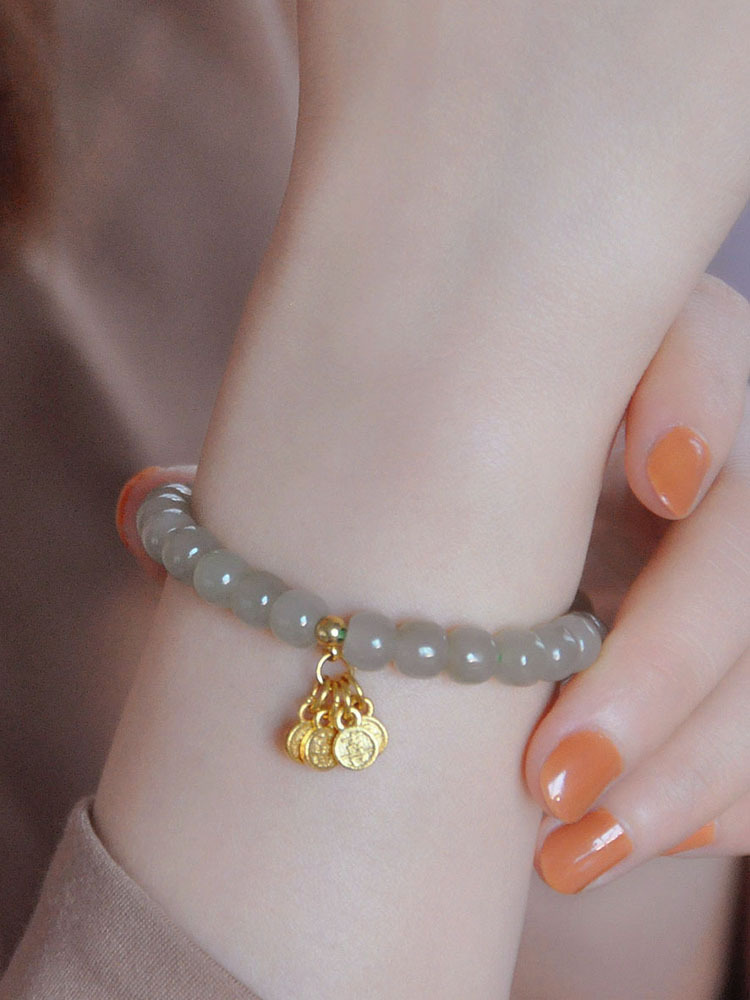 【一生之环】平安喜乐仿和田碧玉手链女小众设计感手串网红轻奢手