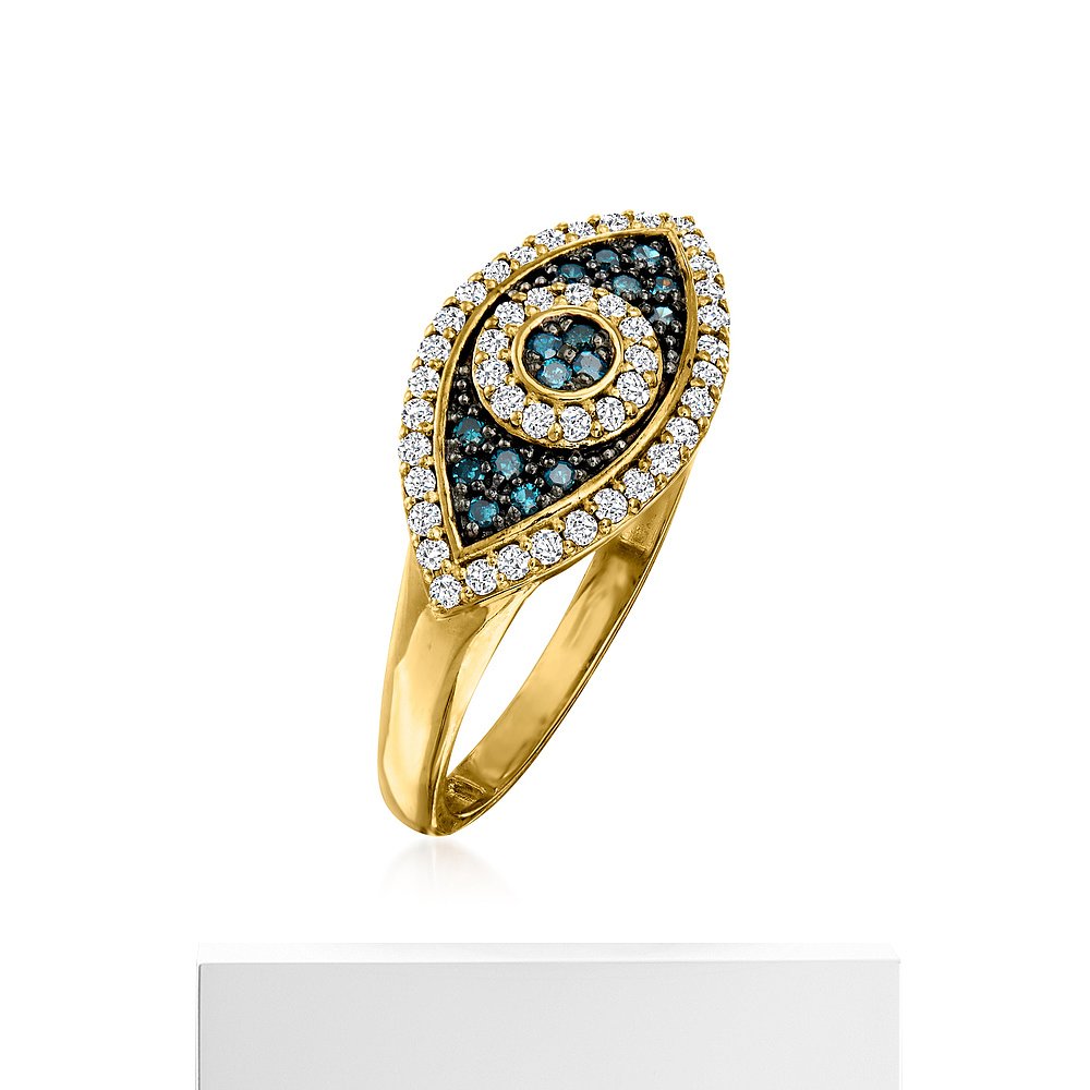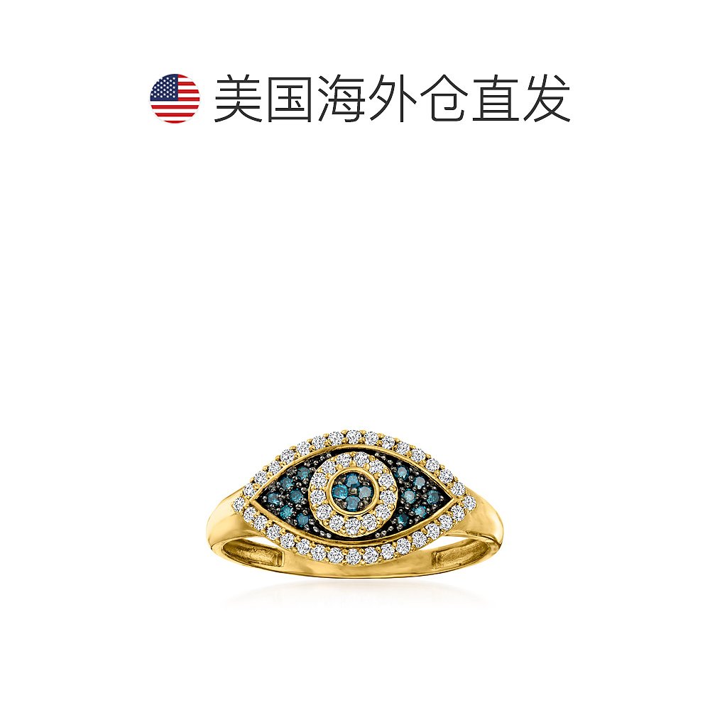 自营 Ross-Simons 14 克拉黄金蓝白钻石邪恶之眼戒指 - 白色 美国