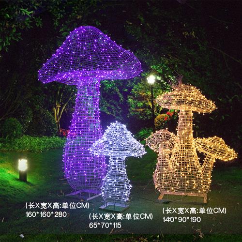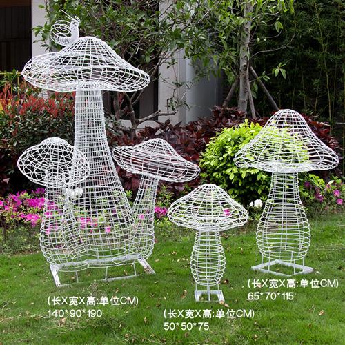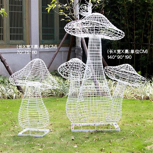 户外不锈钢铁艺镂空蘑菇雕塑仿真植物发光摆件公园林小区草坪装饰