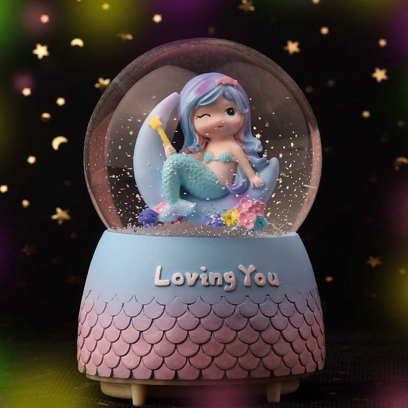 美人鱼发光水晶球八音盒飘雪音乐盒生日礼物送闺蜜女孩情人节礼物