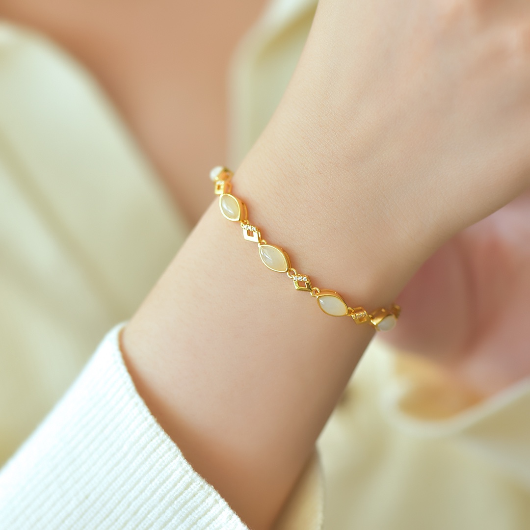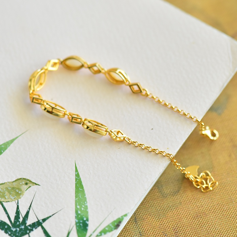 S925银镀18K金镶嵌天然新疆和田玉马眼手链女款时尚高档大气玉石