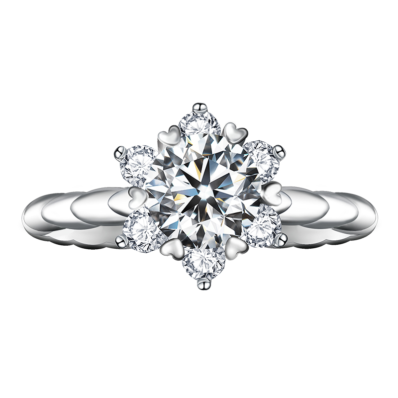 爱心形六爪雪花钻戒女50分1二3克拉仿真钻戒银定18k金莫桑石戒指