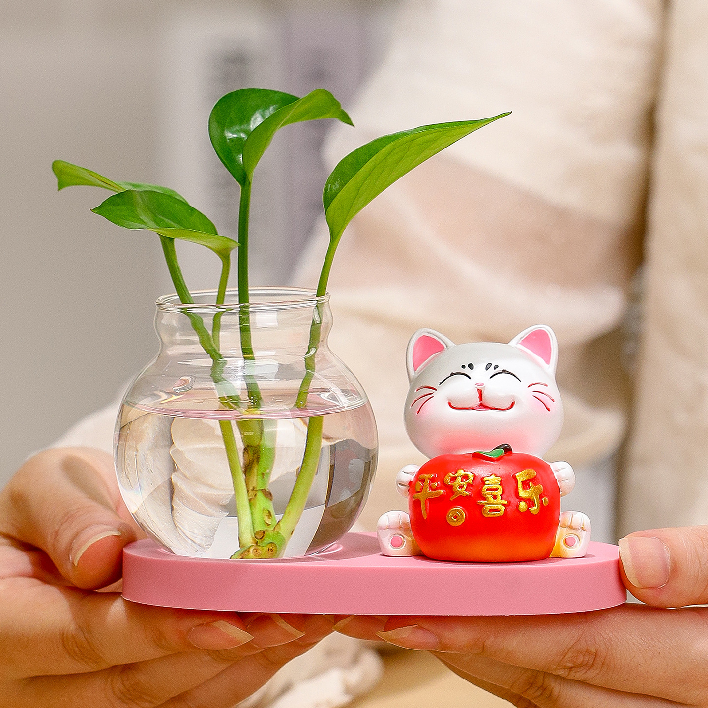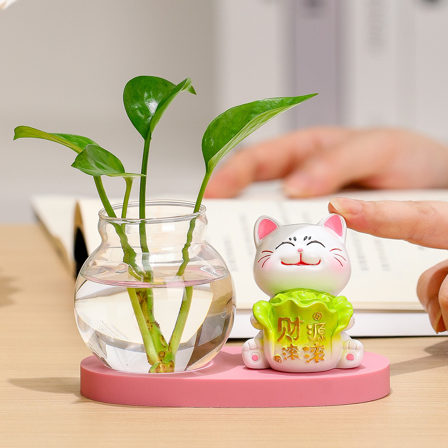 可爱招财猫家居摆件办公室桌面绿萝水培花瓶电视柜阳台插花装饰品