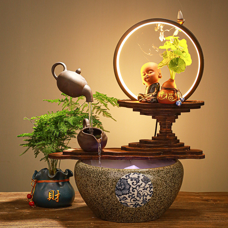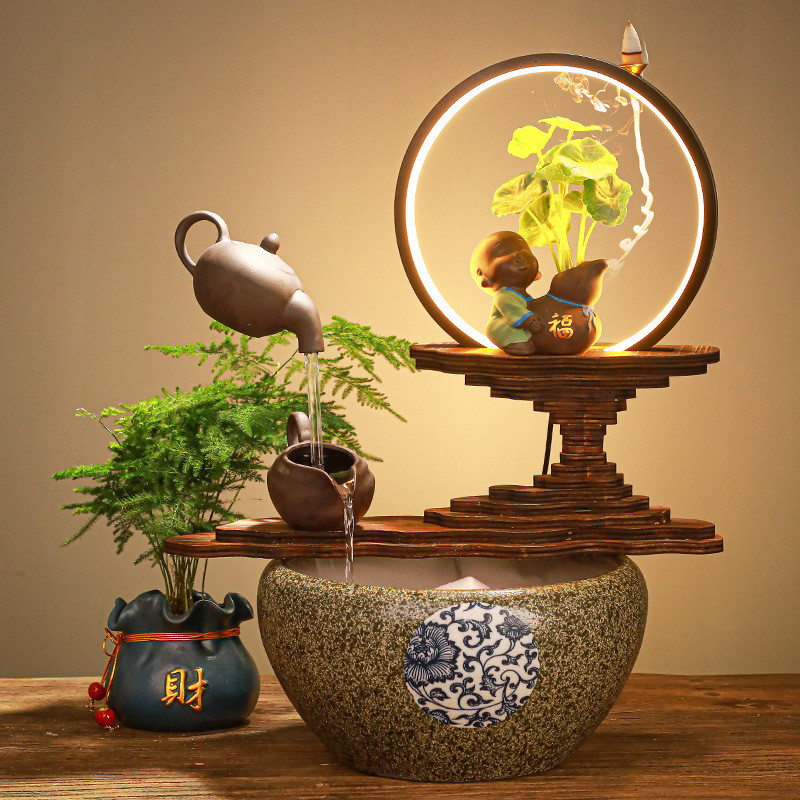 创意摆件流水喷泉悬壶桌面小型流水鱼缸办公室玄关招财开业礼品