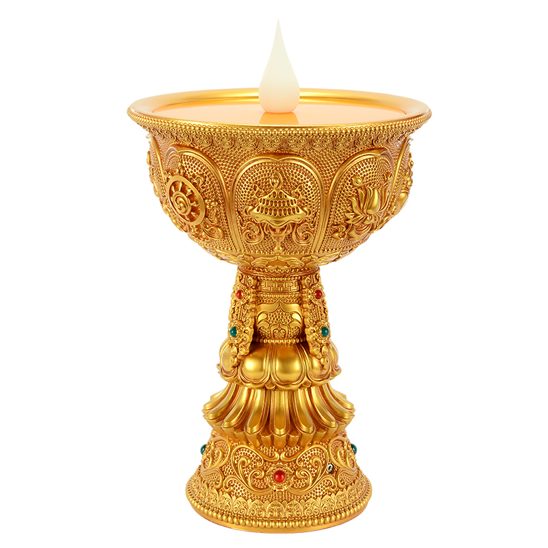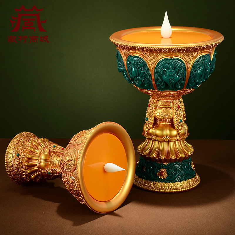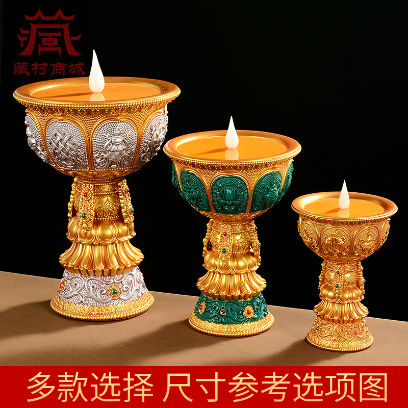 藏村电子酥油灯灯座led插电充电家用佛前供灯八吉祥用品灯烛台