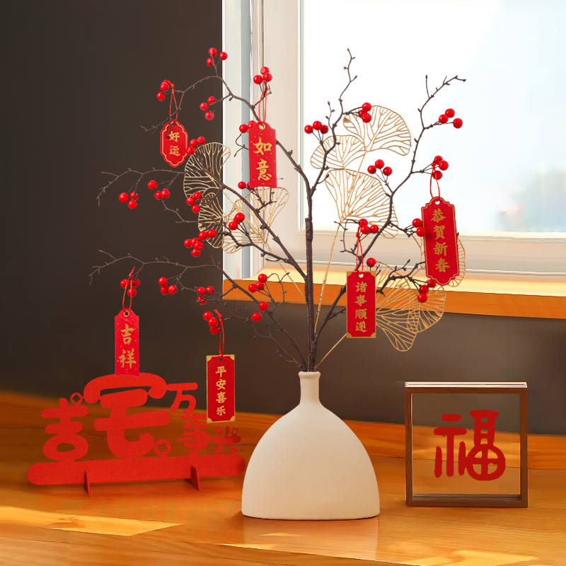 新年装饰摆件乔迁之喜过春节客厅布置花发财果红果年宵装饰品礼物