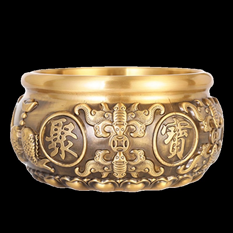 铜聚宝盆招财摆件家用客厅玄关装饰品聚财黄铜米缸存钱罐店铺前台