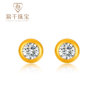 古法黄金耳钉999足金镶嵌莫桑石单钻小气泡圆圈耳针耳饰送女友礼