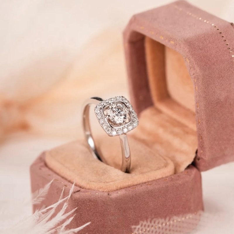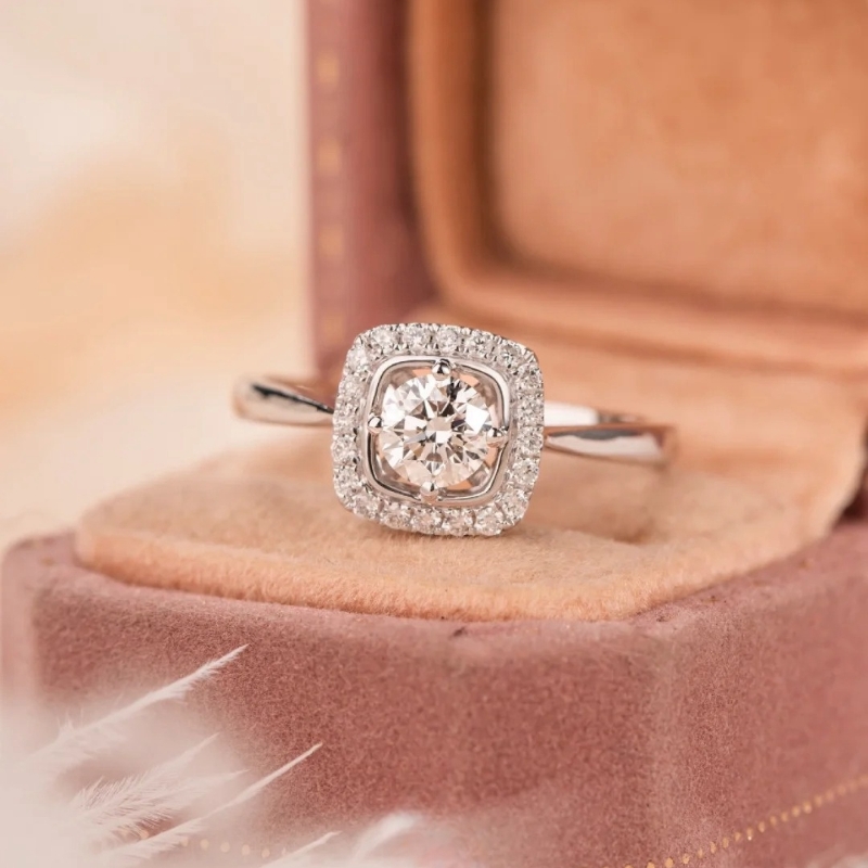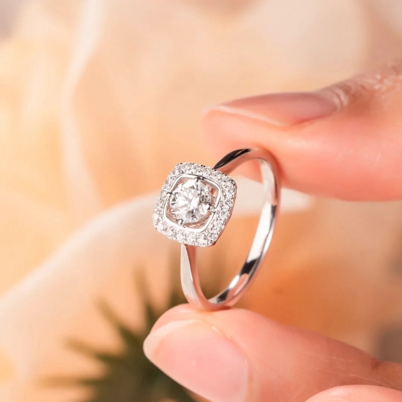YUDANDUN莫桑戒指40分方包圆钻光臂设计新款钻戒时尚求婚结婚女款