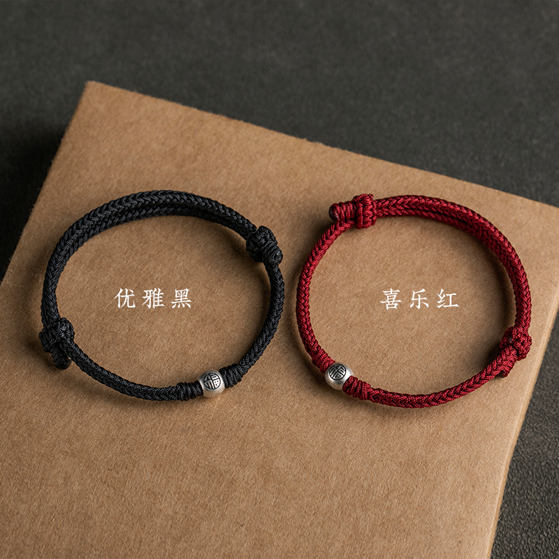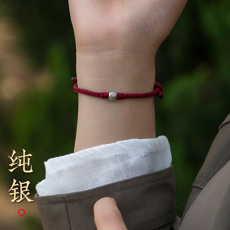 纯银福珠红绳本命年好运手链全手工编织手绳蛇年新款闺蜜情侣礼物