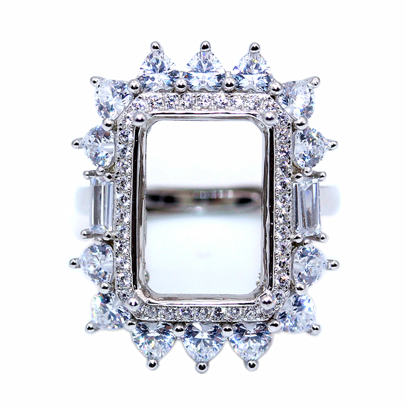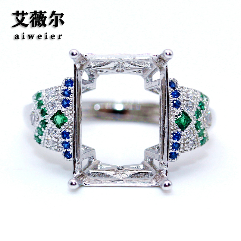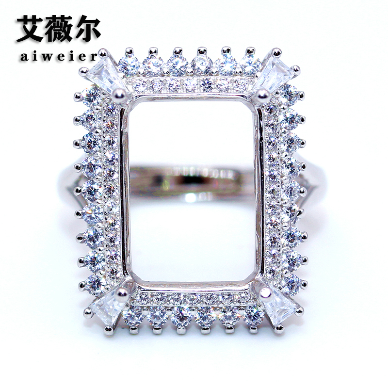 精工925纯银戒托长方形戒指空托原创代宝石镶嵌定制18K金10*14MM