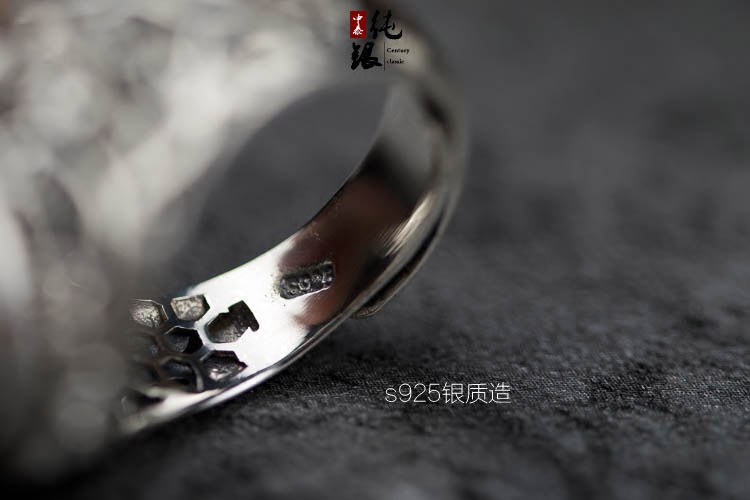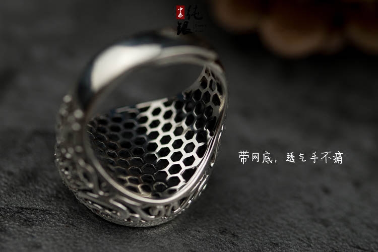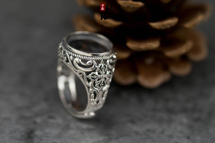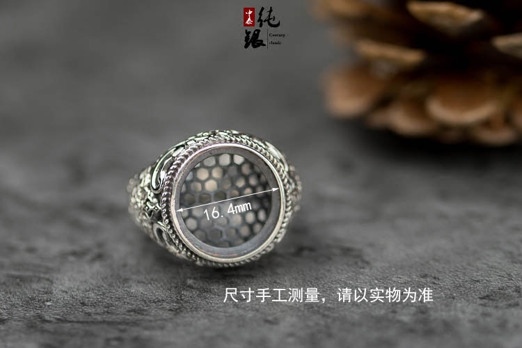 超大气男款欧美复古925纯银戒指托网底空托琥珀密蜡活口戒托16*16