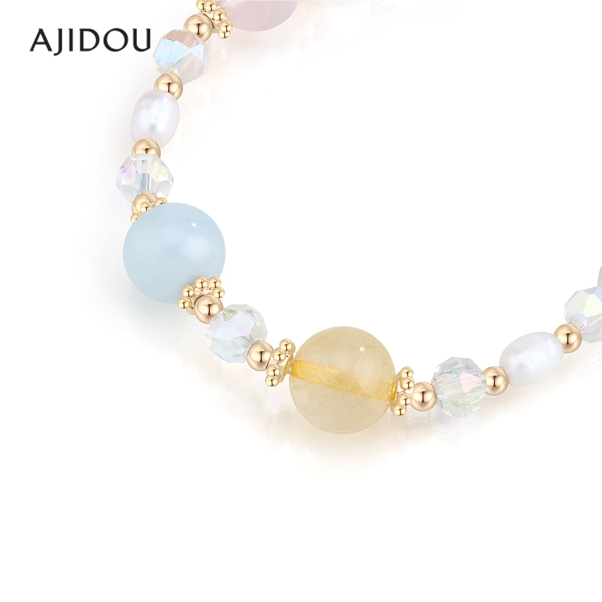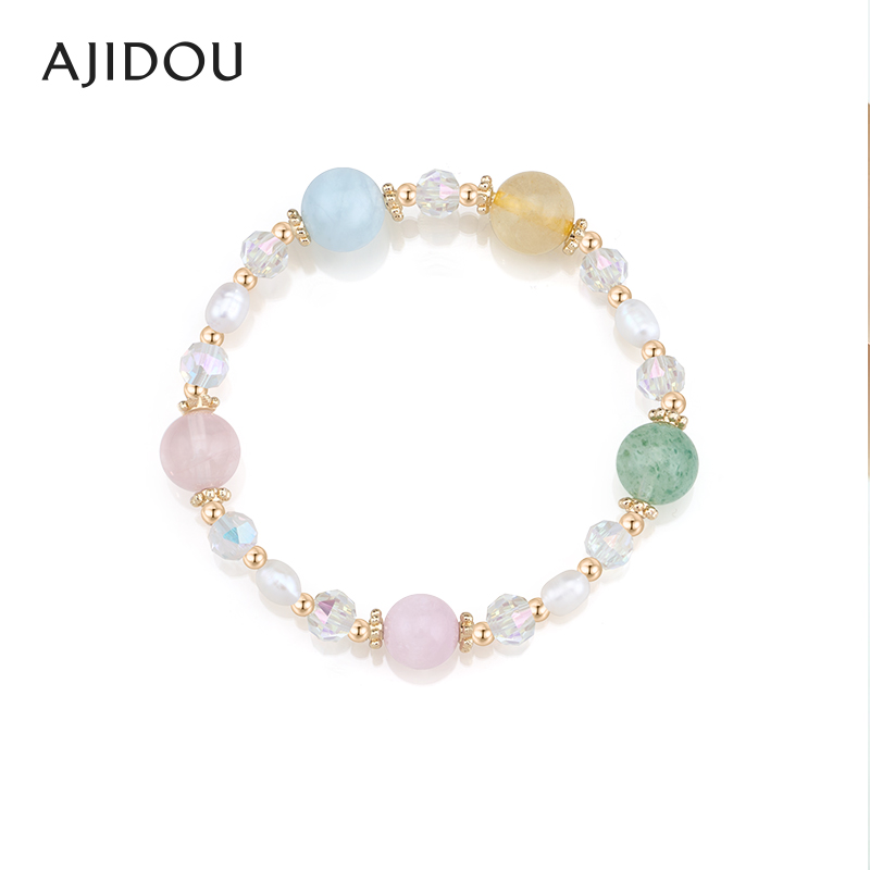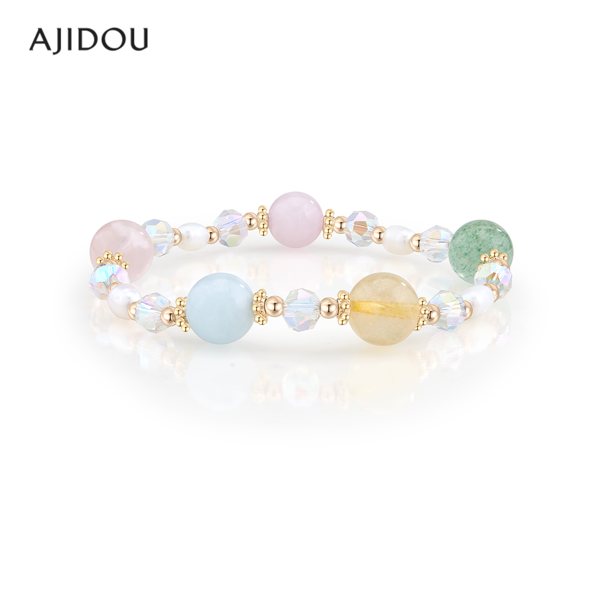 AJIDOU阿吉豆手链女时尚珍珠水晶手串彩色多巴胺夏日缤纷串珠手饰