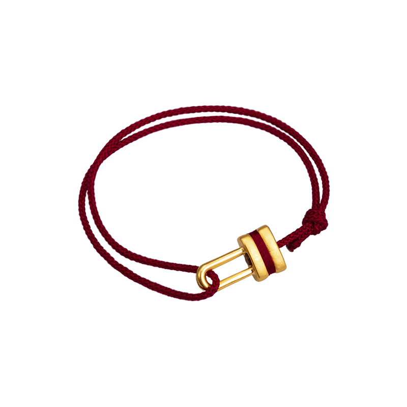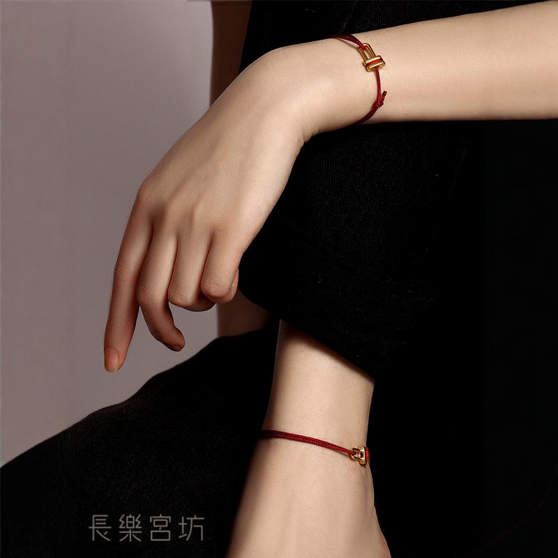 金锁小克重黄金足金手绳本命年红绳叠戴手链手绳细女新婚新年礼物
