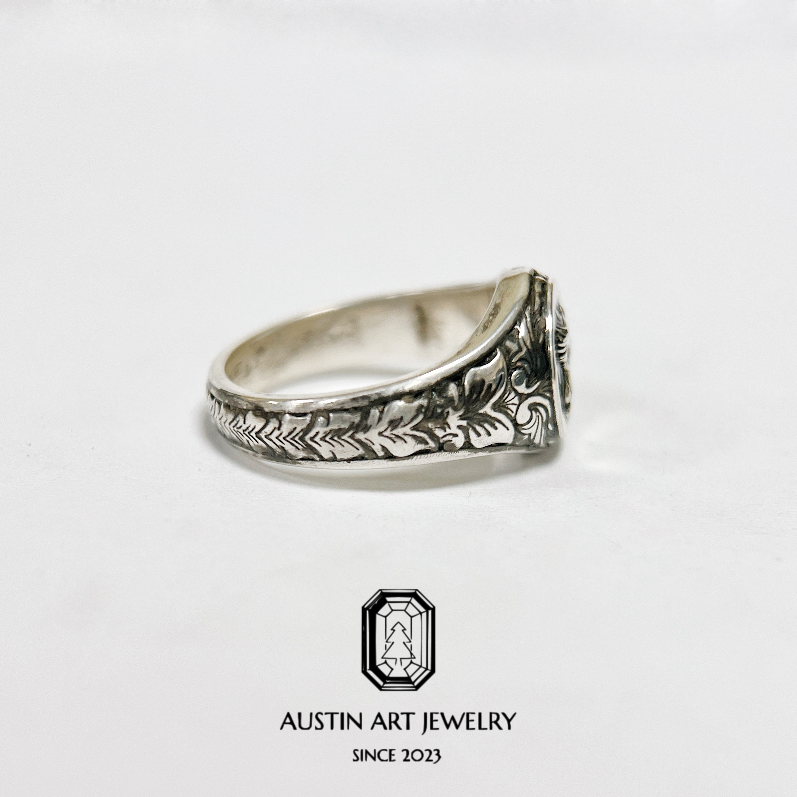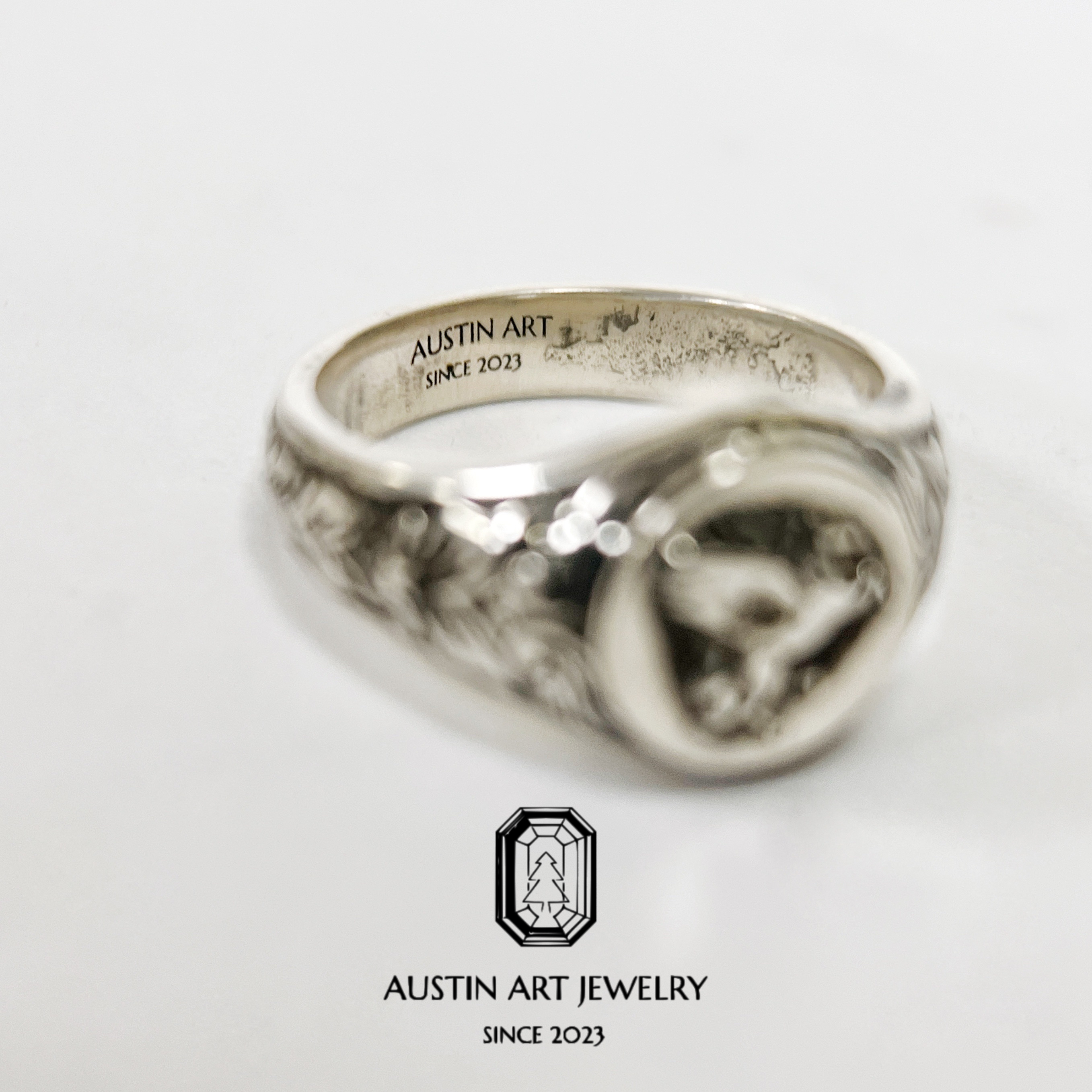 AUSTIN翱森·飞马浮雕戒指 雕金男戒 中性风 925银旧工艺