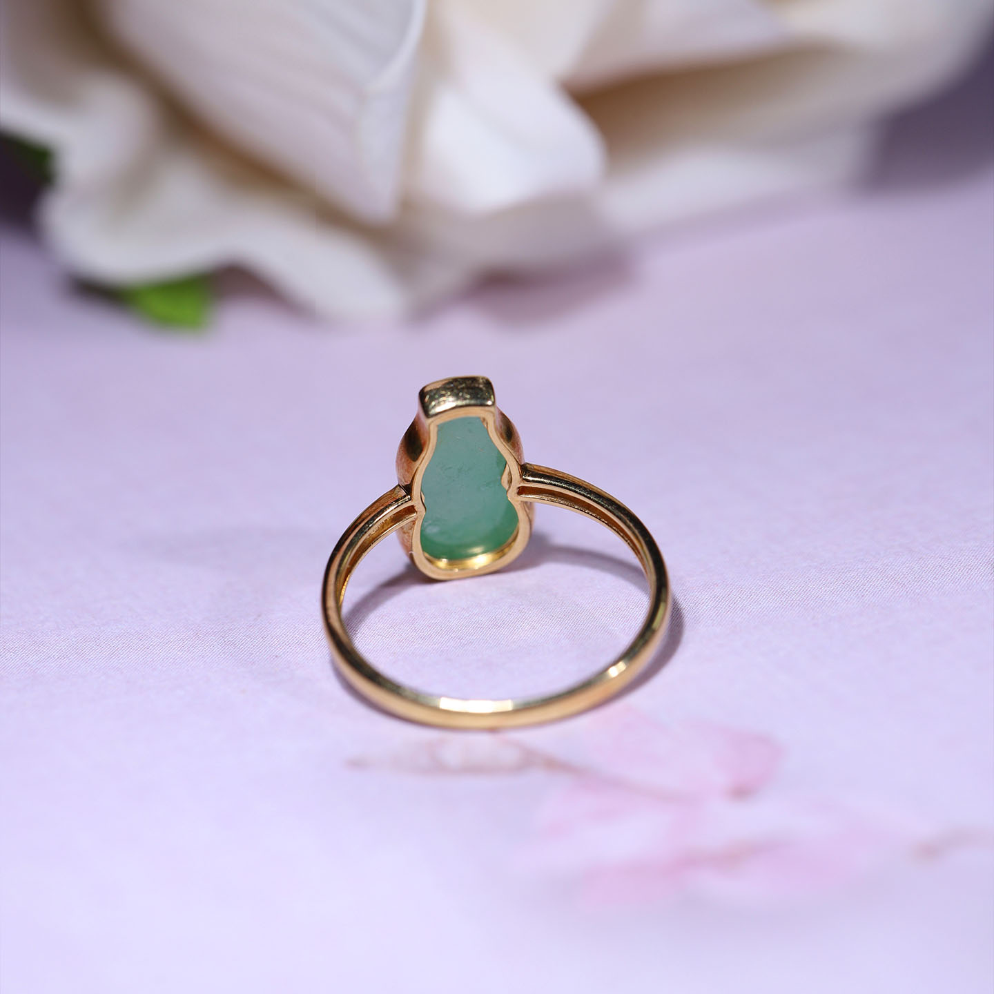 玉秀18K金翡翠葫芦戒指福禄复古国风手饰苏工籽料雕刻定制带证书