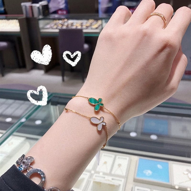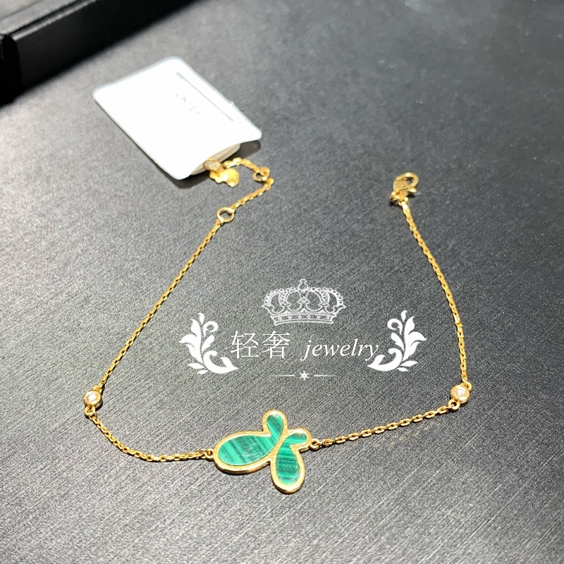 香港22K金无敌蝴蝶手链 女绿色孔雀石白贝母钻石黄金纯.银手镯手