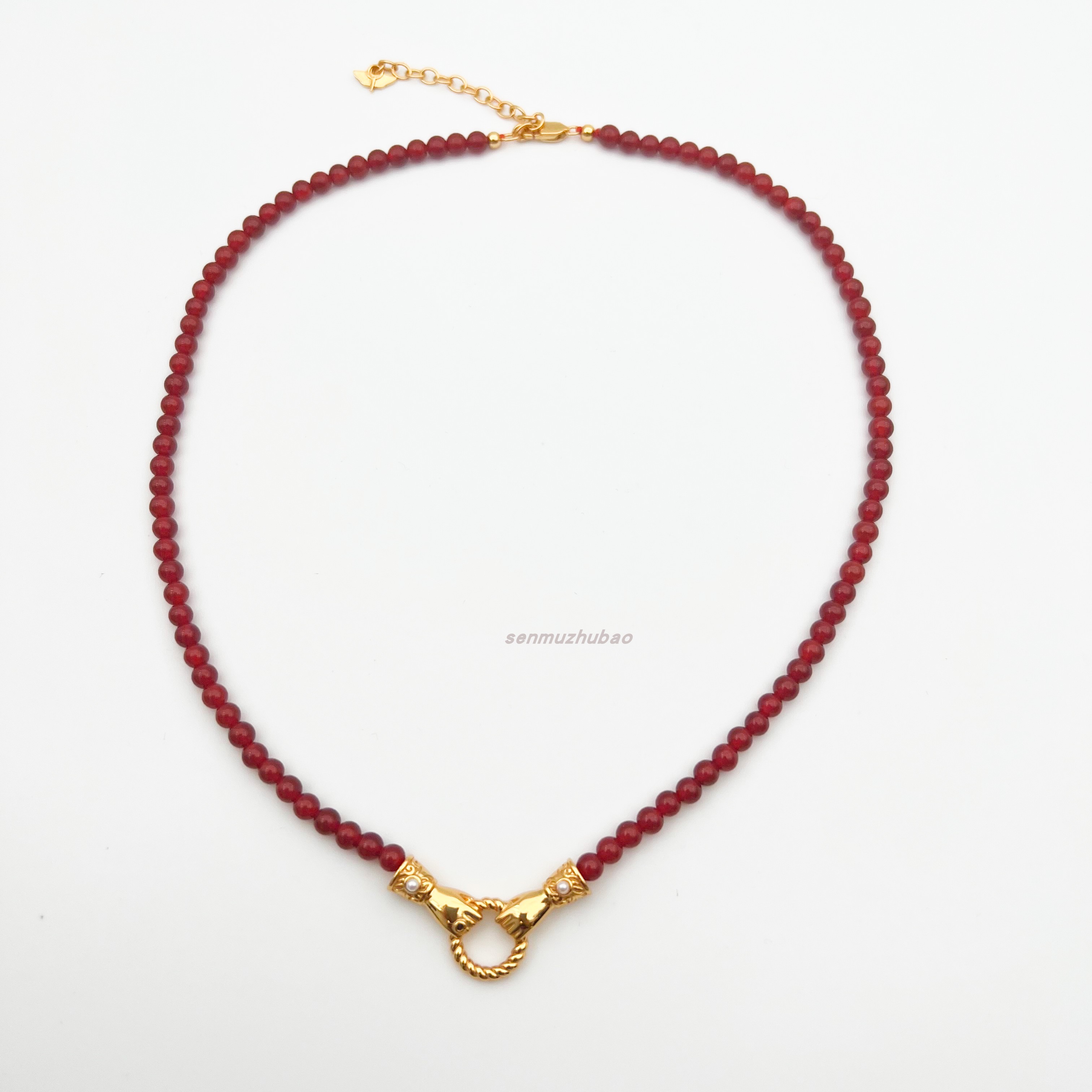欧美小众时尚天然玛瑙手拉手项链红色串珠配饰高级感气质新年礼物