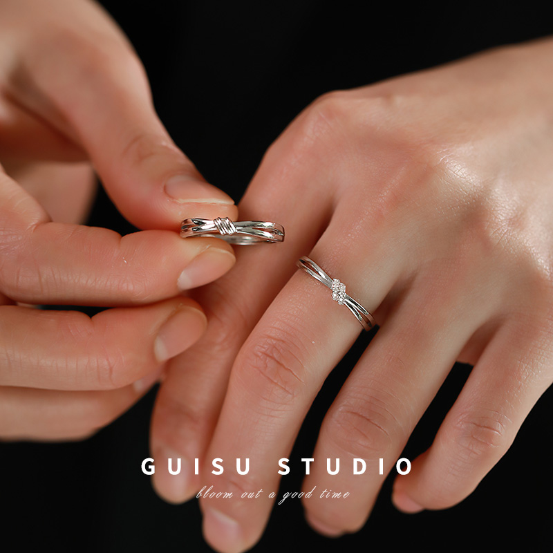 归素 结发情侣对戒小众设计999纯银一对款活口素圈戒指定制礼物