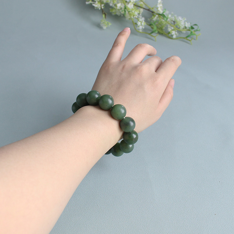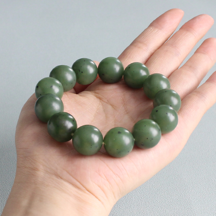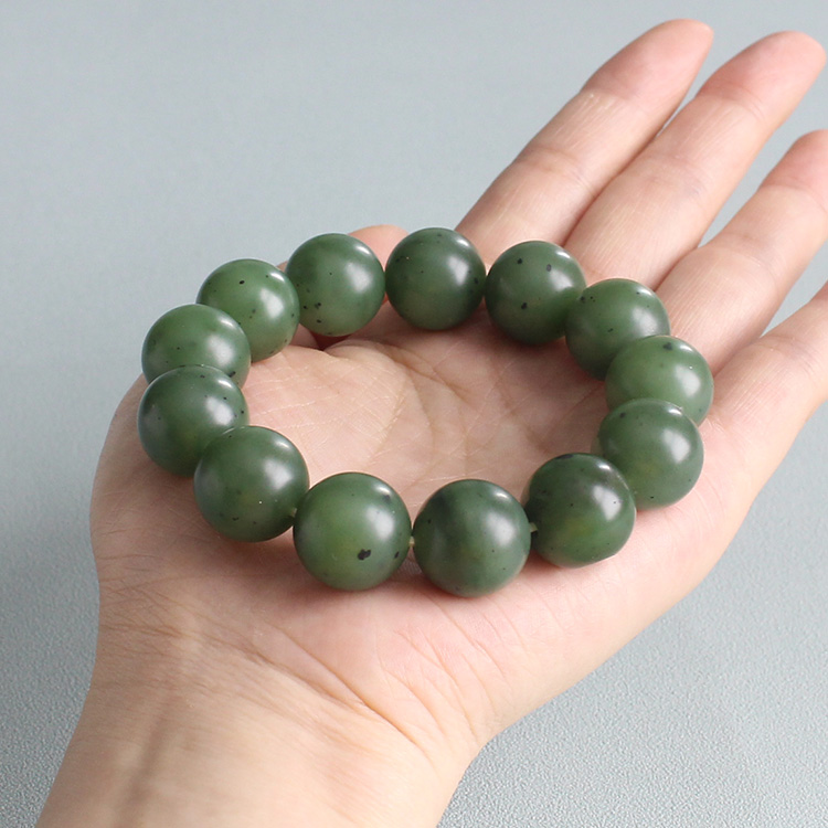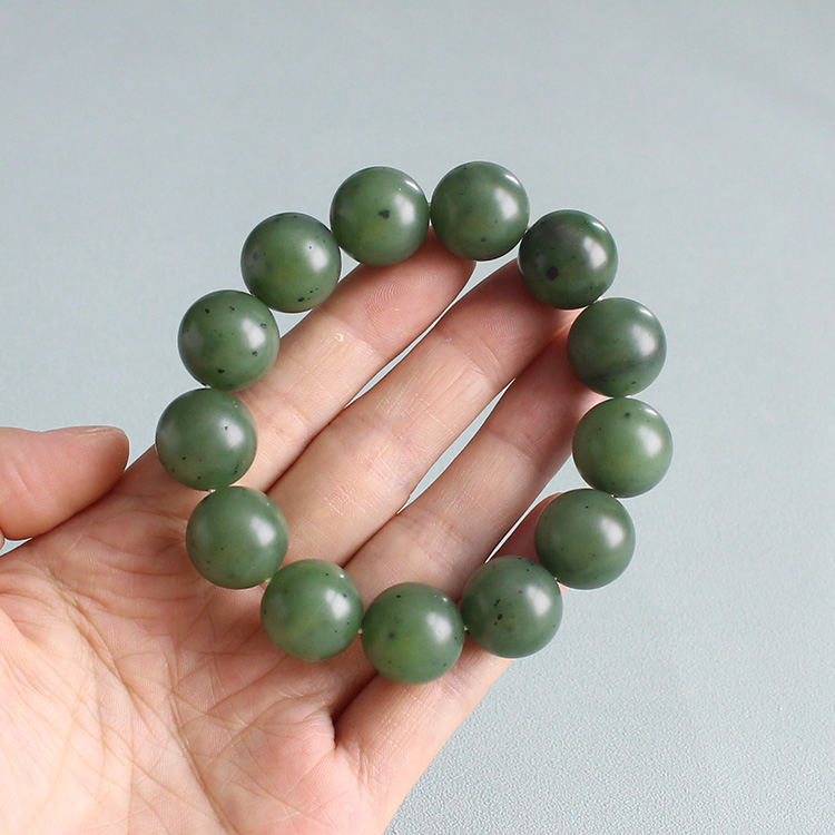 16mm碧玉籽料圆珠手串 有原皮 和田玉 朕®开仓换图